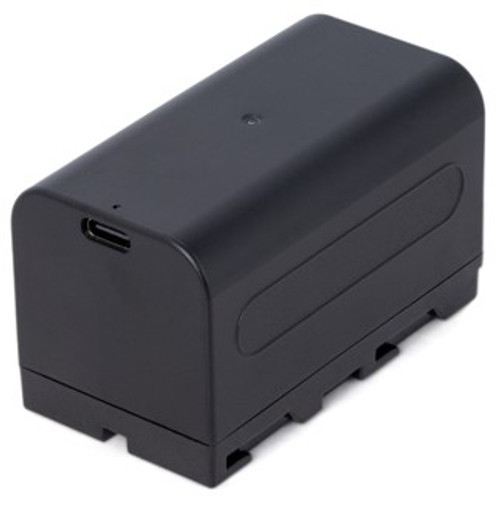 The battery is compatible with cameras, lights, and other accessories using the Sony type NP-F570 battery. In addition to its own on-board charging port, the battery also works with external chargers.